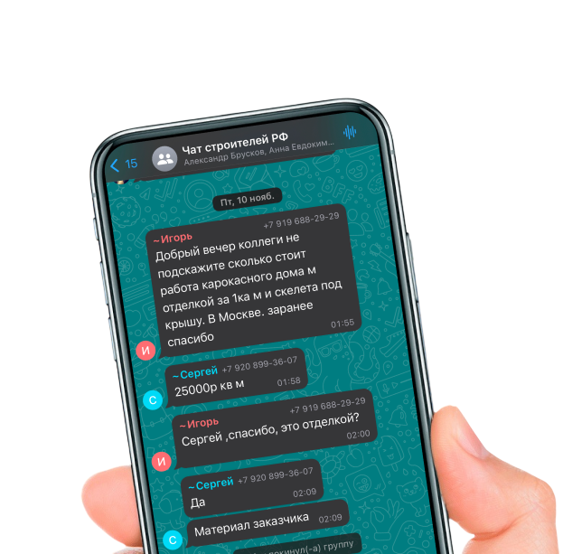 На удивление идея с чатами зашла. Ребята общаются, благодарят нас и просят добавить своих знакомых строителей в чат. Если вы строитель, то вступайте тоже в наши чаты, там много интересного и полезного.