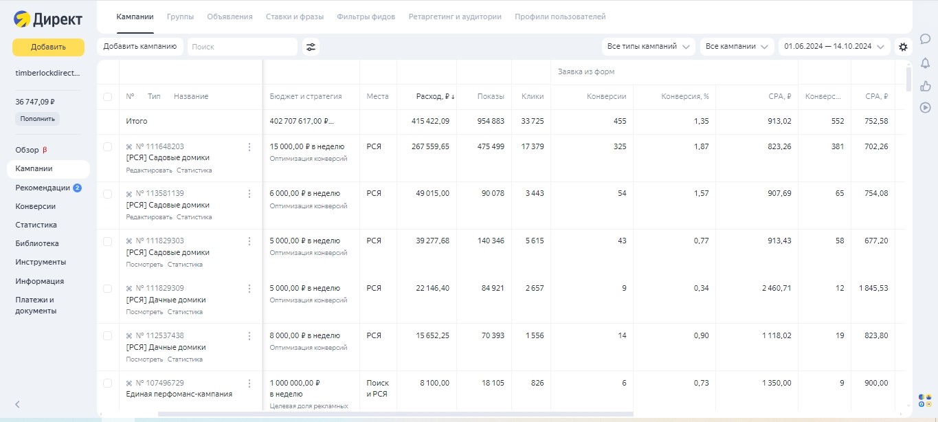 С клиентом работаем через партнёра уже несколько лет. Перед летом 2024 года была поставлена задача увеличить количество лидов на летне-осенний сезон. Гео показов - Москва и область. Бюджет 70-90 тыс. в месяц. Kpi по стоимости заявки - до 2 тыс. План по количеству - 40-50 шт. в месяц. Уже был готовый сайт на Тильде, с подстановкой заголовков под каждый сегмент.